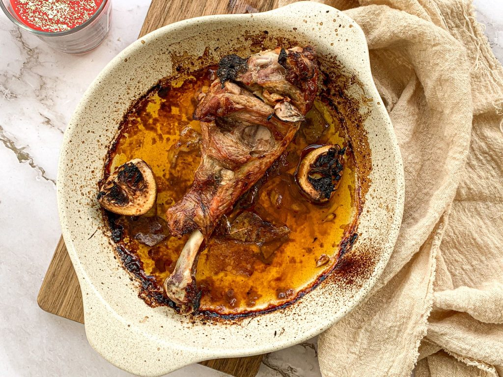 - Leve ao forno até dourar, cerca de 1 hora e 30 minutos. De vez em quando regue a perna de peru com o molho.